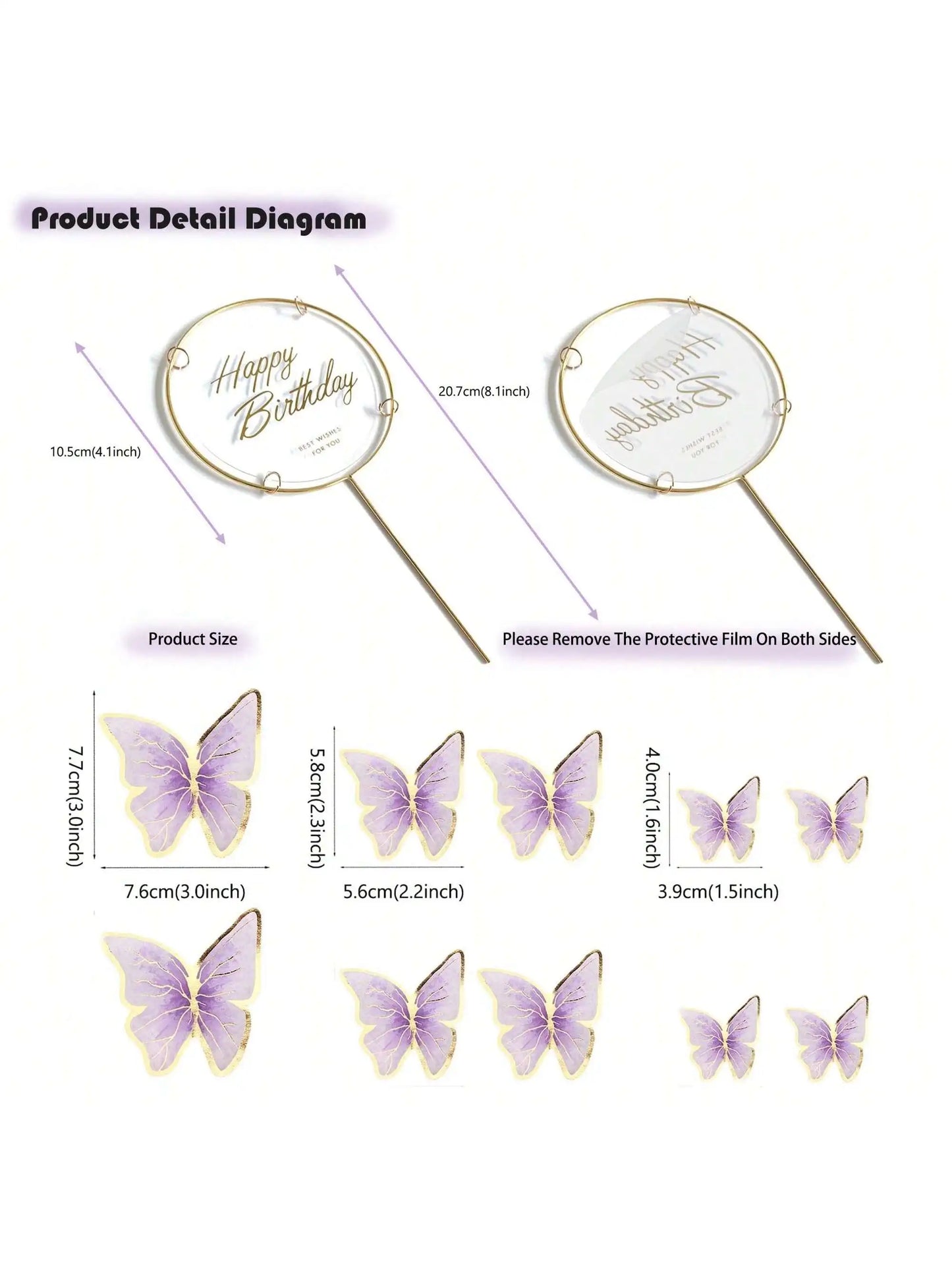 Add a touch of whimsy to any birthday celebration with our 11-piece Butterfly Cake Top Hat and Butterfly Cupcake Top Hat set! Made of durable metal and adorned with shimmering gold, these decorations are perfect for a girl's birthday cake party. Elevate your cake game and add some sparkle to your next event.
