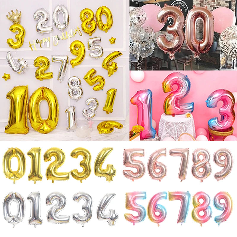 16/32/40inch Digital Foil Balloons Rose Gold Silver Gradient Number 0-9 Birthday Party Wedding Decoration Baby Shower Globos