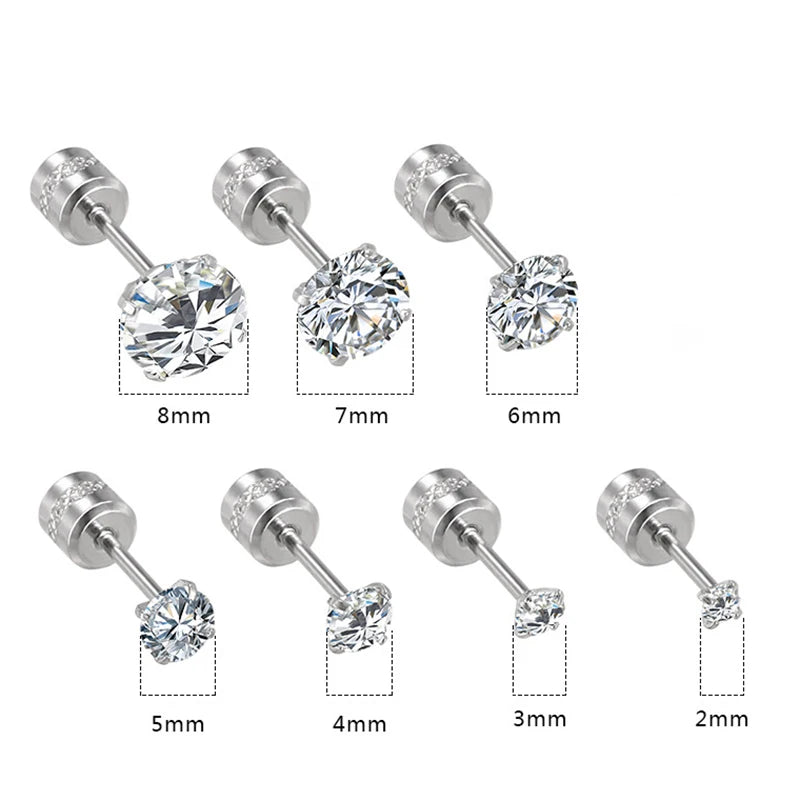 1Pair Stainless Steel Crystals Stud Earrings For Men Women Not Fade Ear Rings Jewelry
