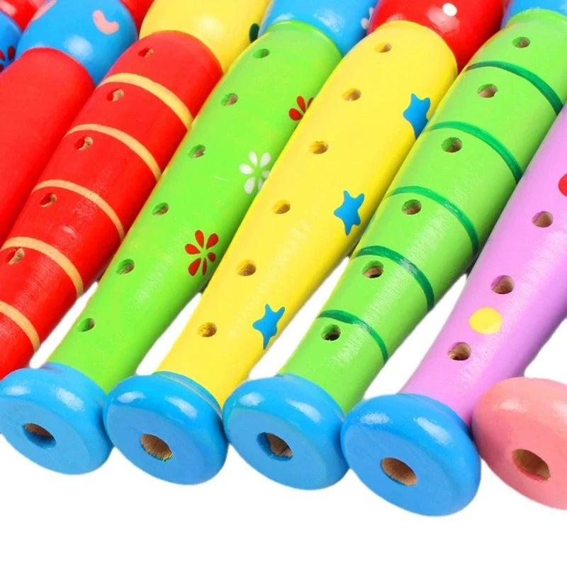 1Pc Wooden Cartoon Flute Children Clarinet 6-Hole Piccolo Musical Instrument Toys Early Learning Educational Wooden Toys