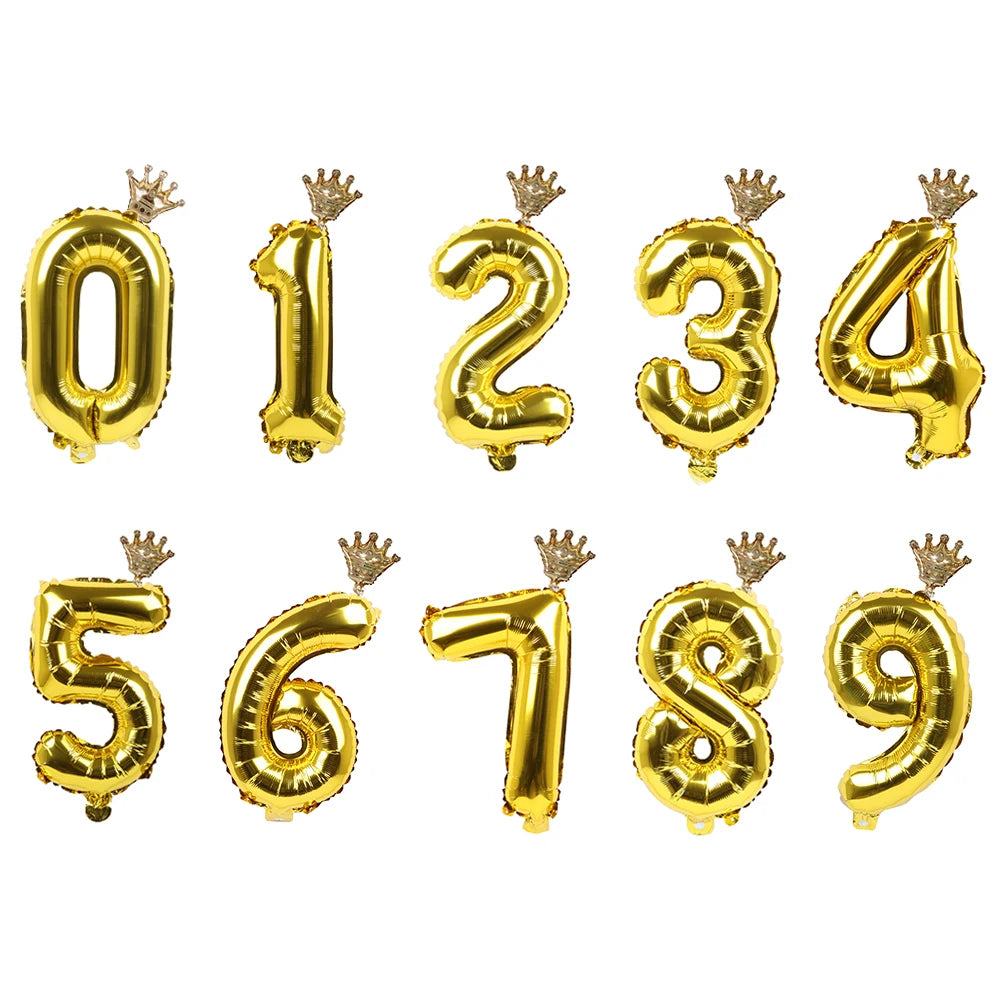 2pcs 32inch Rainbow Number Foil Balloons with Crown for Kids Boy Girl 1st Birthday Party Decorations Rose Gold Figures Globos