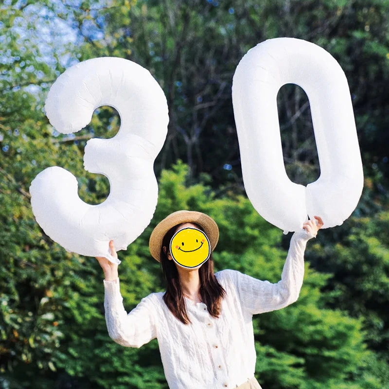 32/40inch Cream Caramel Big Number Foil Balloons 0 1 2 3 4 5 6 7 8 9 Balls White Color Wedding Birthday Party Decor Baby Shower