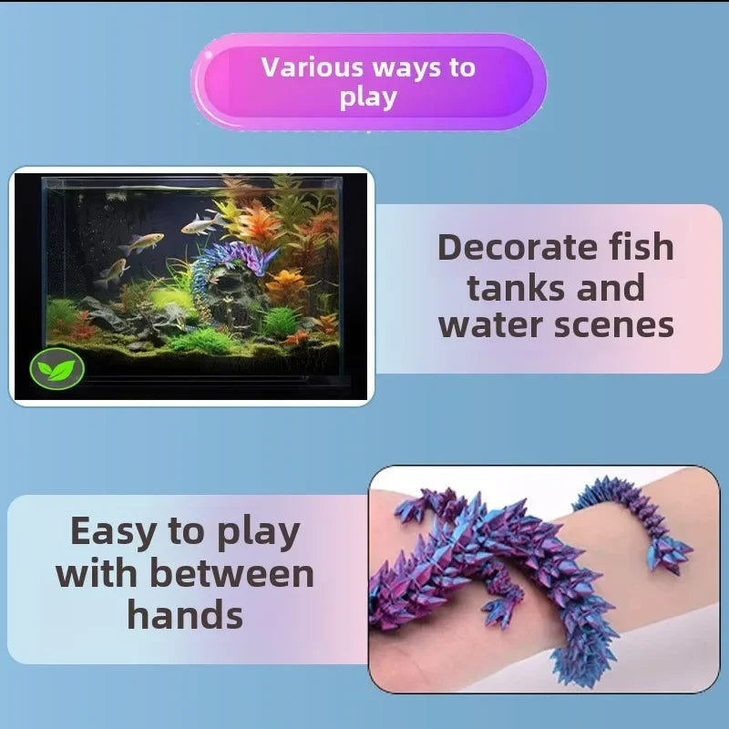 1. Material: 3D printing technology, made from PLA, which is eco-friendly. 2. Flexible Posture: Full joint 3D printing technology gives this dragon a high degree of mobility, you can pose a variety of dynamic and realistic poses at will, to capture every vivid moment of the dragon 3. Versatile Decor occasion: Perfect for offices, fish tanks, or as a unique car accessory, our 3d printed articulated dragon adds whimsy and charm to any space Attention: Due to different computer display colors, the actual color may be slightly different from the picture above, please understand. Color: As per picture Material: PLA Size: 30cm Package Includes:3D Printed Dragon*1pc |
