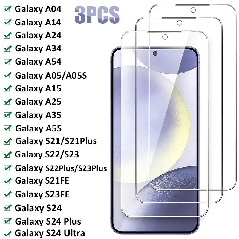 3PCS Tempered Glass For Samsung Galaxy S24 S23 S22 Plus S21FE A04 A14 A54 A34 A15 A25 A05S A35 A55 Screen Protector Film Glass
