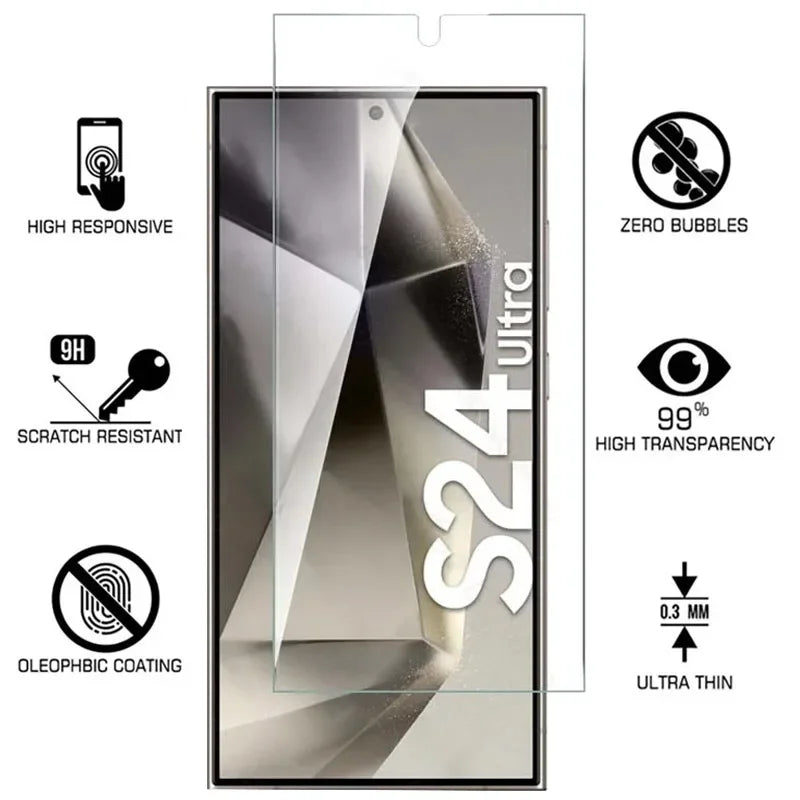 Protect your Samsung Galaxy S24 Ultra S24+ Plus screen with our 4-piece tempered glass set. These screen protectors feature fingerprint unlocking capabilities, providing both convenience and protection. Made with high-quality materials, they ensure your screen stays intact and scratch-free. Upgrade your device with our S24Ultra Protective Glass.