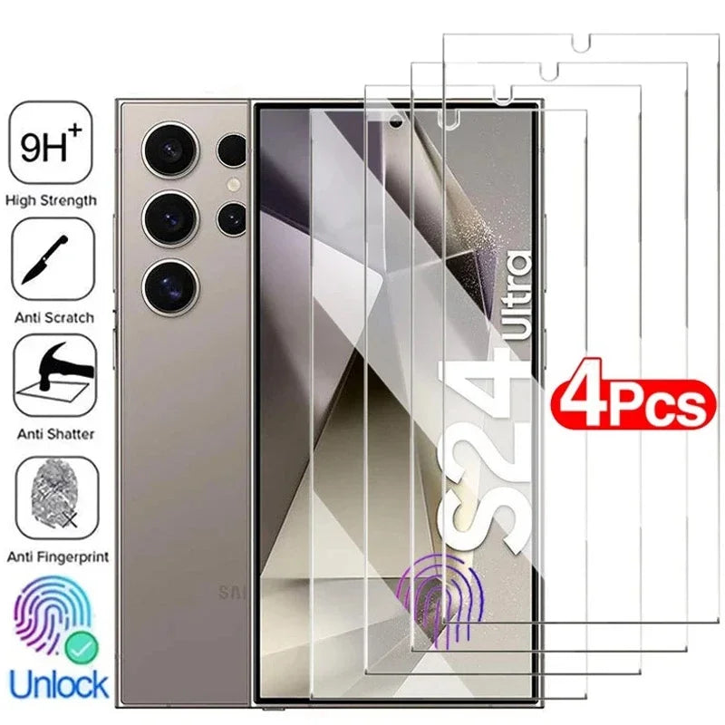 4PCS Tempered Glass For Samsung Galaxy S24 Ultra S24+ Plus Fingerprint Unlocking Screen Protector S24Ultra Protective Glass