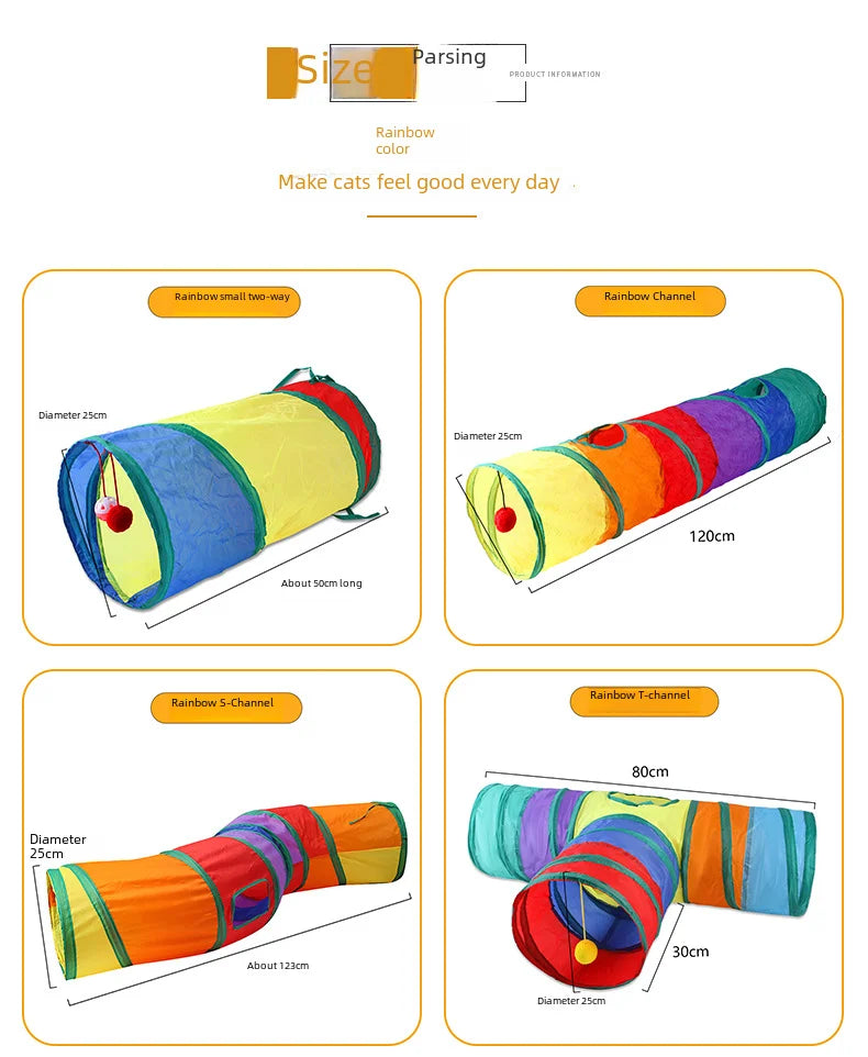 650g Rainbow Cat Toy Tunnel Playground Cats Scratching Running Interactive Teaser Toy Kittens Adult Cats