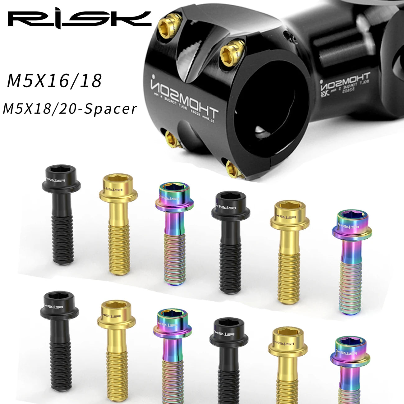6pcs/bag RISK Bike Stem Bolts Bicycle Handlebar Fixing Screws Titanium Alloy M5x16 M5x18 M5X20 Wish Washers Hex Socket Head