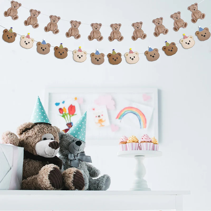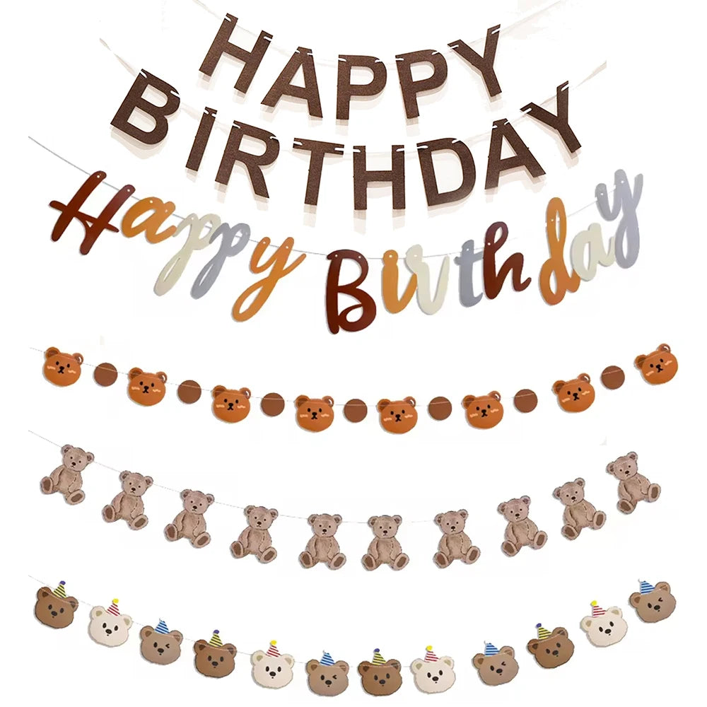Bear Happy Birthday Banner Cute Bear Paper Birthday Bunting Banner Hanging Garland for Kids Baby shower 1st First Birthday Decor