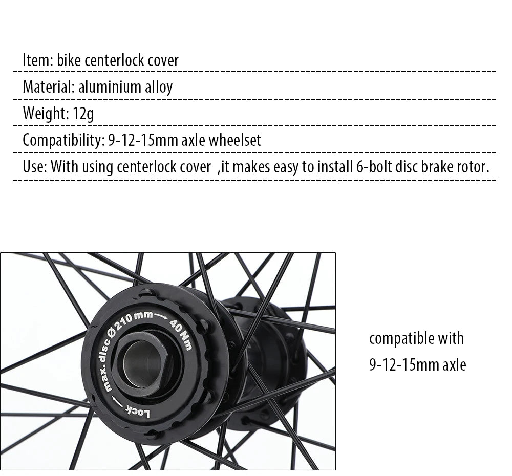Bicycle Centerlock Lockring and Spacer Bike Center Lock Cover Wrench for 6 Bolt Disc Brake Rotor Wheelset Hub Aluminium Alloy