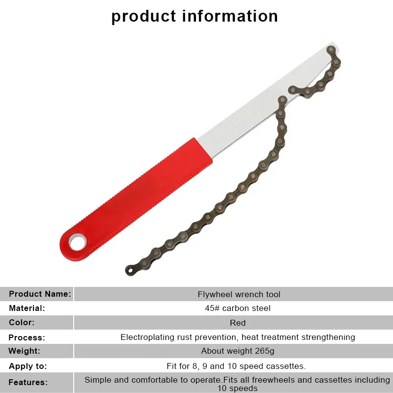 3. Fine Workmanship: The workmanship of the tool is excellent, the handle is longer and better, and the plastic end is non-slip, which will not hurt your hand. Independent non-slip handle cover for easy grip and force. The front end also uses medium and high-grade chains, which are strong to grip and not easy to hurt the flywheels.