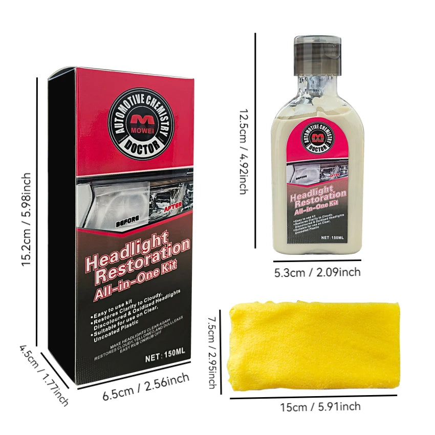 Revive your car's headlights with our Car Headlight Repair Fluid. Say goodbye to oxidation, yellowing, and scratches with our powerful formula. Our Enhanced Crystal Coating also provides long-lasting protection. Expertly renovate your headlights with confidence and restore your car's appearance.