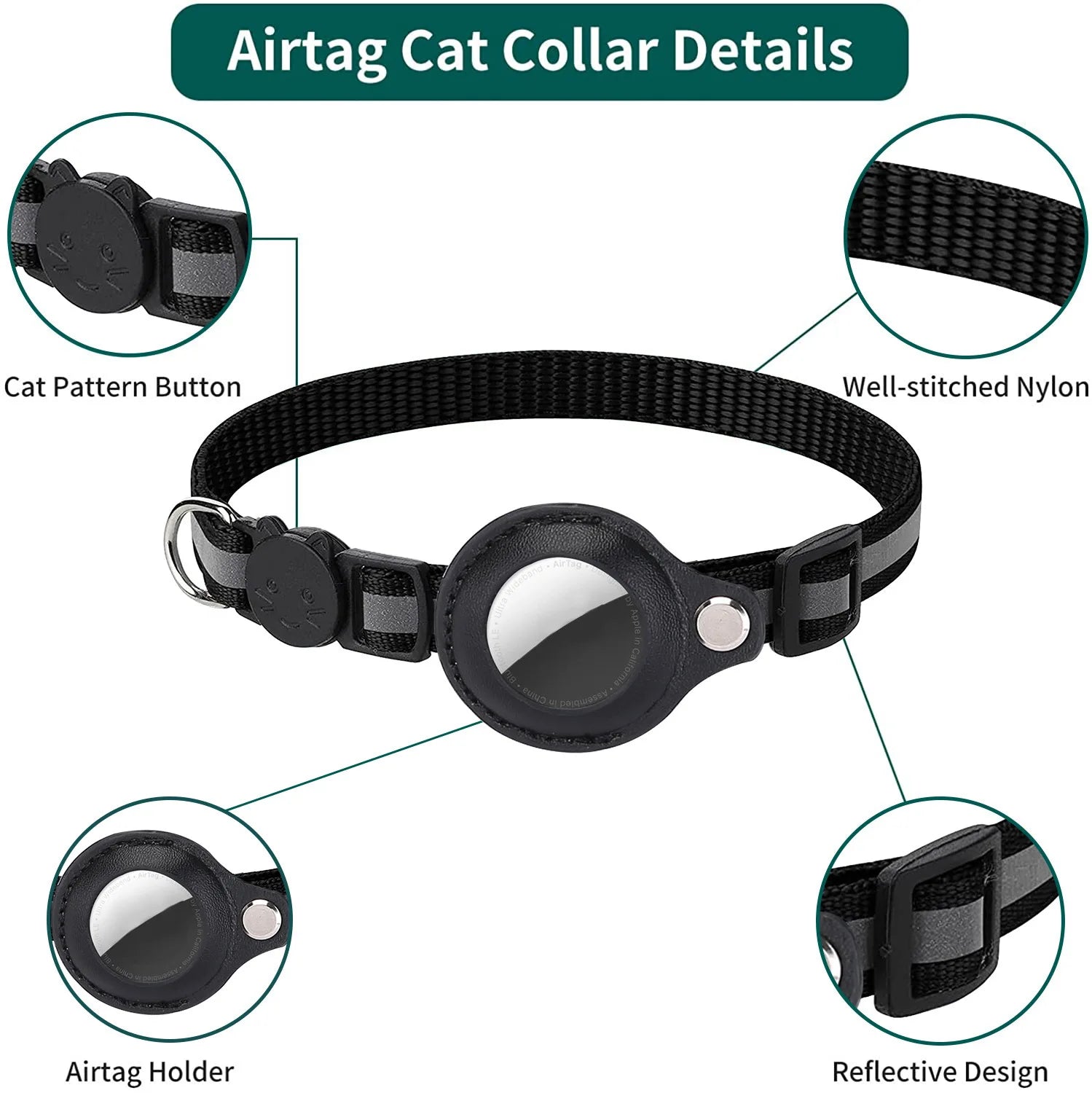 【SAFE BREAKAWAY BUCKLE DESIGN】Our airtag cat collars feature sturdy breakaway buckle, which allows your cat to quickly break free when it is in danger outdoors or hanging on a tree. In addition, the AirTag cat collar has two reflective strips so you can easily find your cat at night. This makes it safer for cats to chase or play outside.