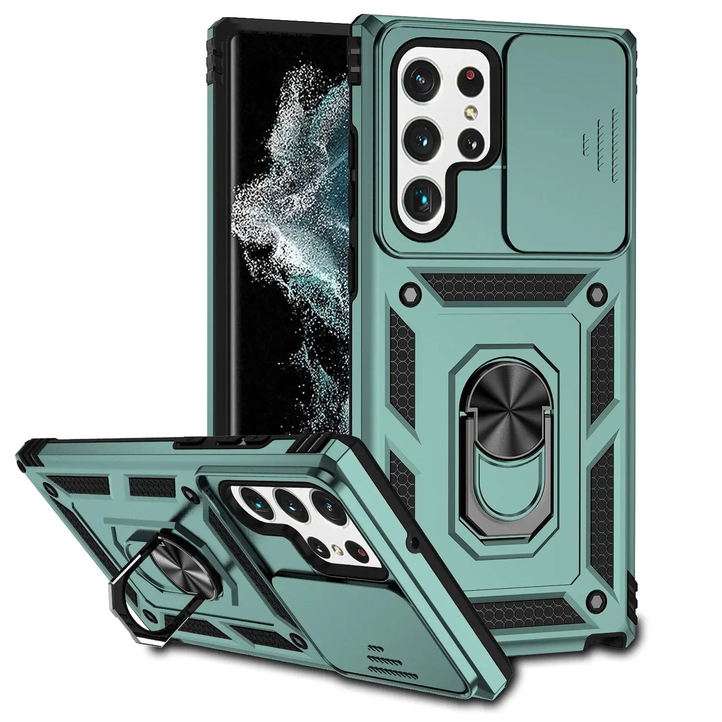 Enhance the protection of your Samsung Galaxy S24 Ultra with this case. The slide lens and magnetic holder feature provide convenient access to your camera while keeping it secure. Its bumper design ensures a secure grip and safeguards against accidental drops. Compatible with Samsung S23, S24, S22, and S21 models.