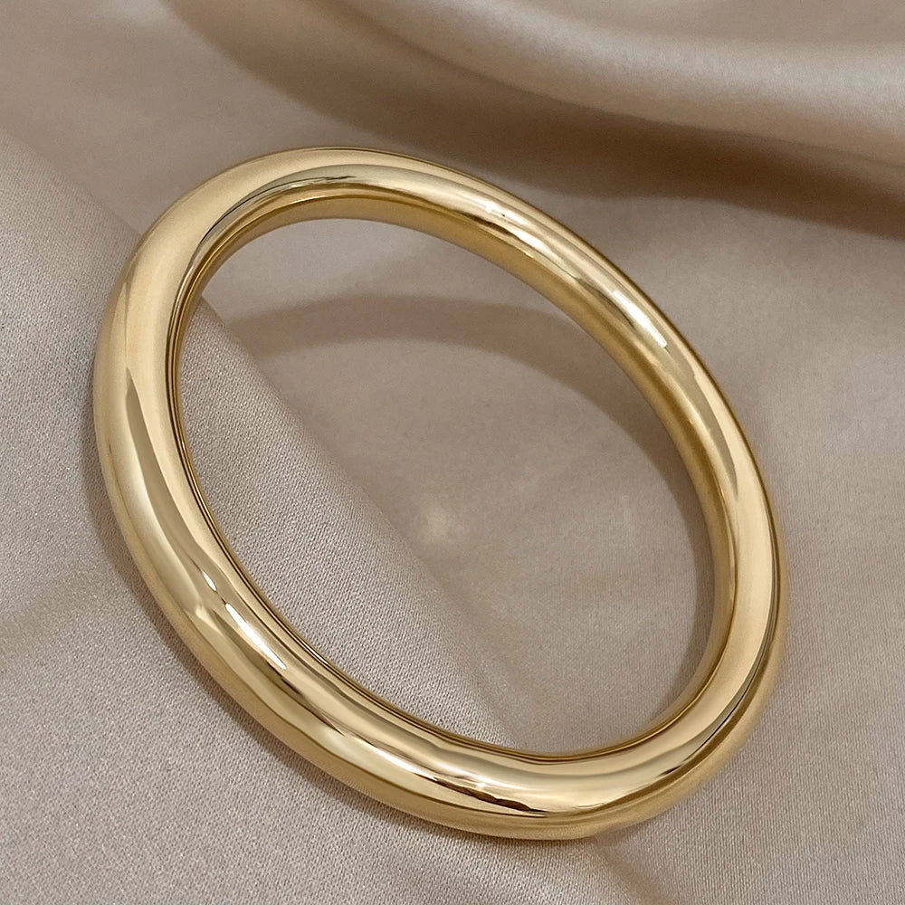 Glossy Solid Color Thick Bracelet Stainless Steel Bangle for Women Cuff Wirstband Smooth Waterproof Charm Bracelets Jewelry Gift