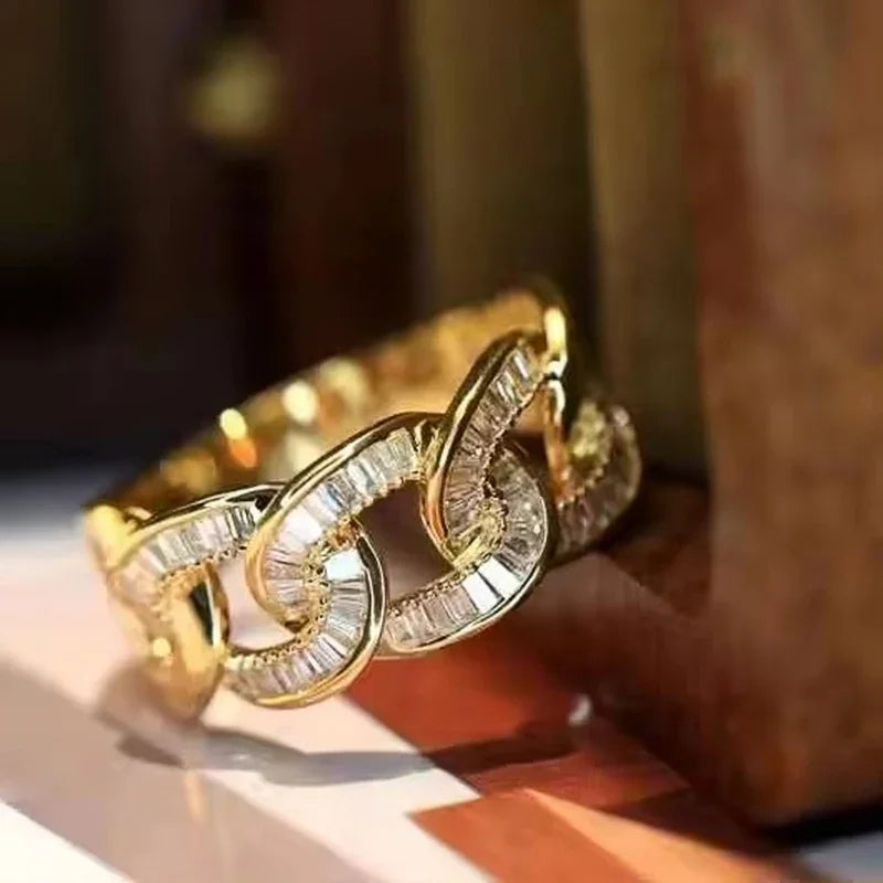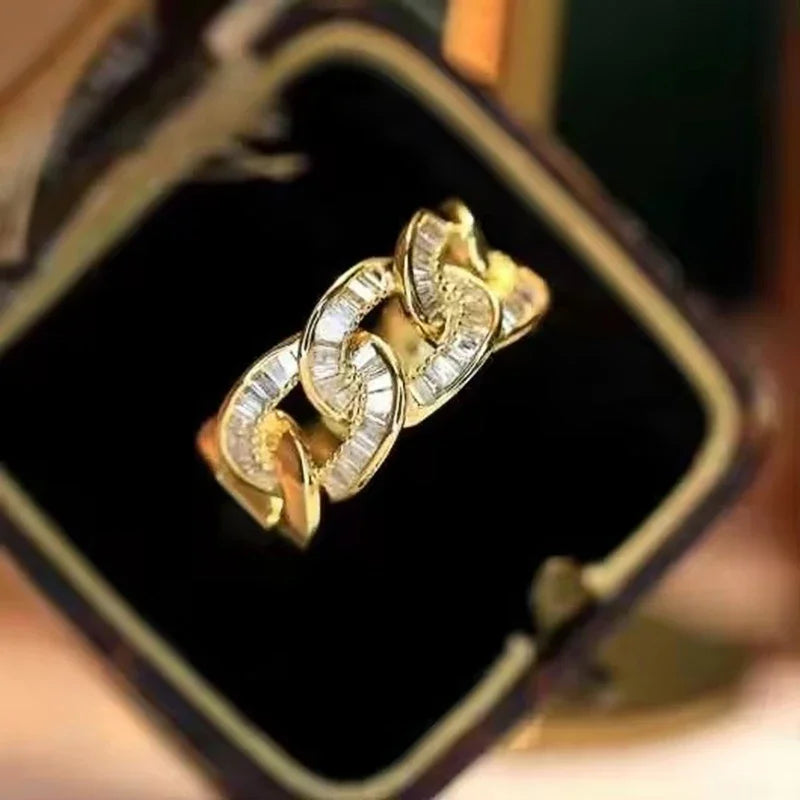 Chain Linked Design Women Rings Special-interested Wedding Accessories Gold Color High-quality Cubic Zirconia Jewelry