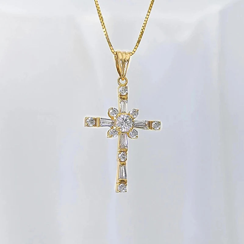 Fashionable Cross Pendant Necklace for Women Brilliant Cubic Zirconia Luxury Wedding Accessories Exquisite Girls Jewelry