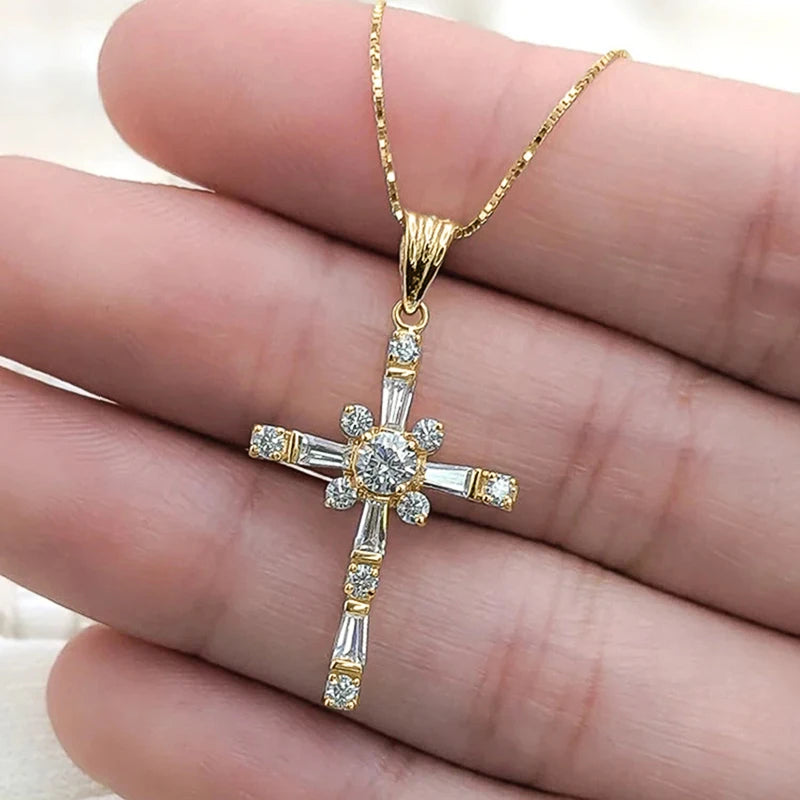 This exquisite cross pendant necklace for women is the perfect addition to any outfit. Made with brilliant cubic zirconia and featuring a fashionable design, this luxury wedding accessory is sure to impress. Elevate your style with this must-have jewelry piece for girls.