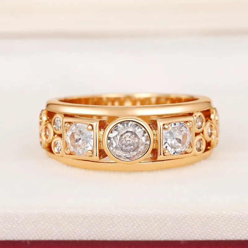 Geometric CZ Gold Color Rings for Women Fashion Versatile Design Wedding Bands Accessories Party Modern Statement Jewelry