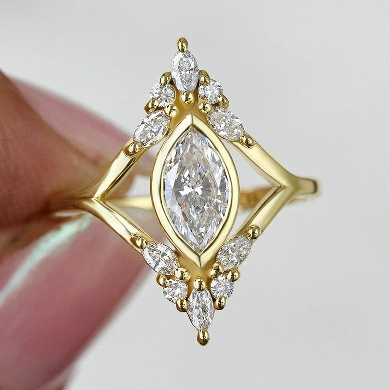 Elevate your style with our Modern Fashion Women Wedding Rings. These geometrically shaped gold rings are adorned with stunning cubic zirconia stones, perfect for any engagement party. Experience luxury with our high-quality female jewelry, designed to make a statement.