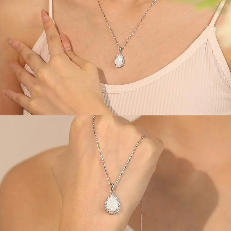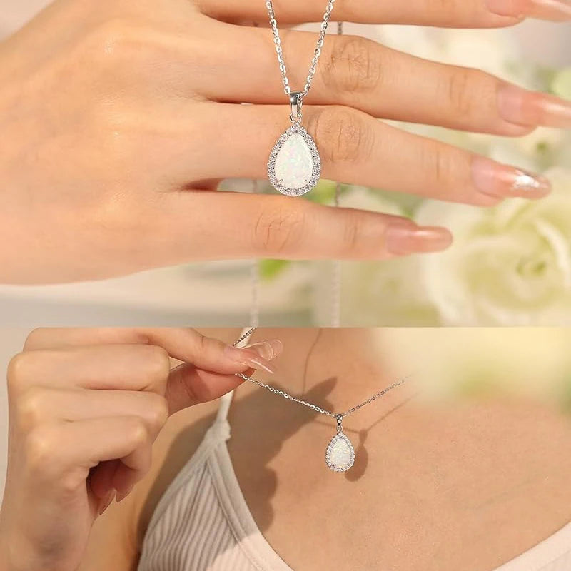 Pear Imitation Opal Pendant Necklace for Women Elegant Wedding Party Female Accessories Birthday Gift New Fashion Jewelry