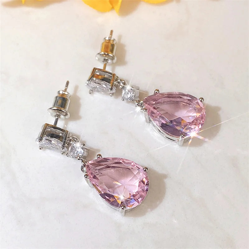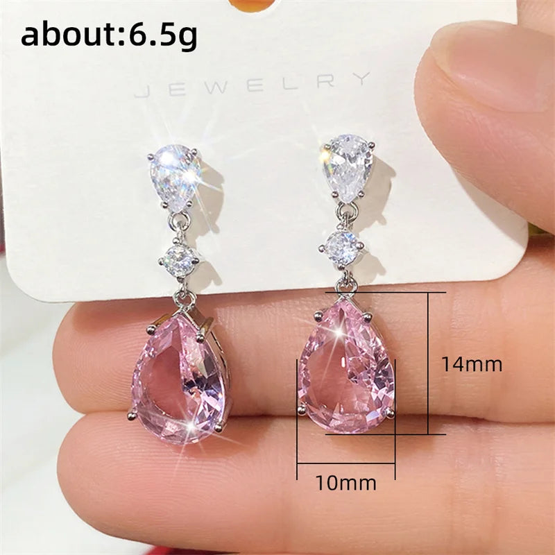 Temperament Sweet Pink Pear Cubic Zirconia Drop Earrings Women Engagement Party Exquisite Ear Accessories Fashion Jewelry
