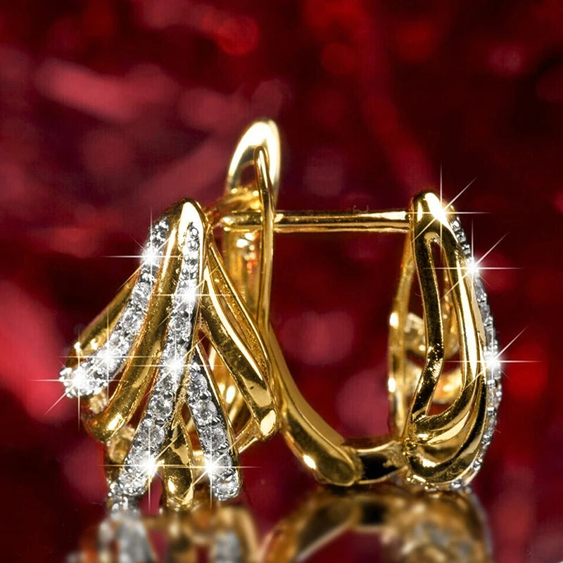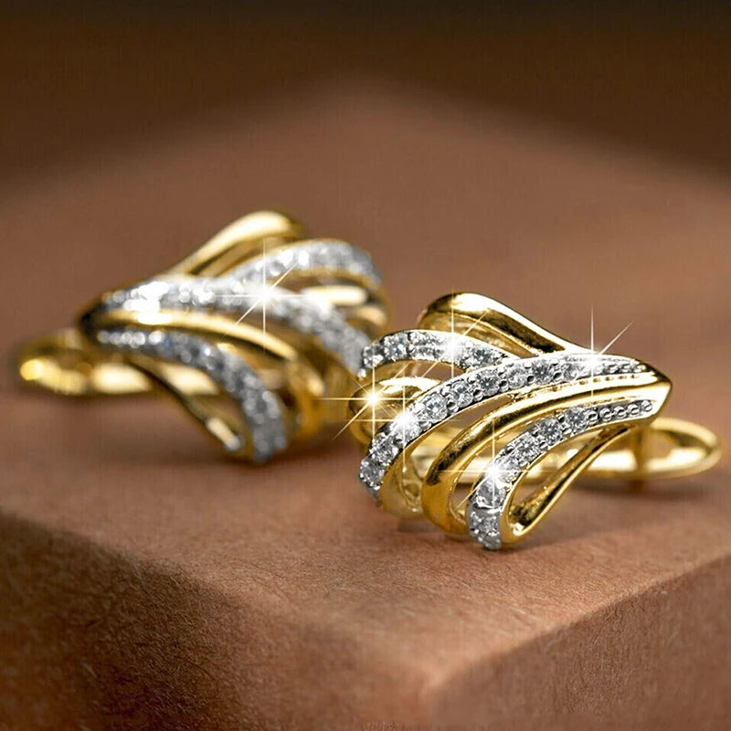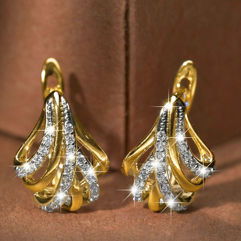 Trendy Lady Two-tone Style Hoop Earrings with Brilliant Zirconia Aesthetic Hollow-out Design Accessories for Daily Party