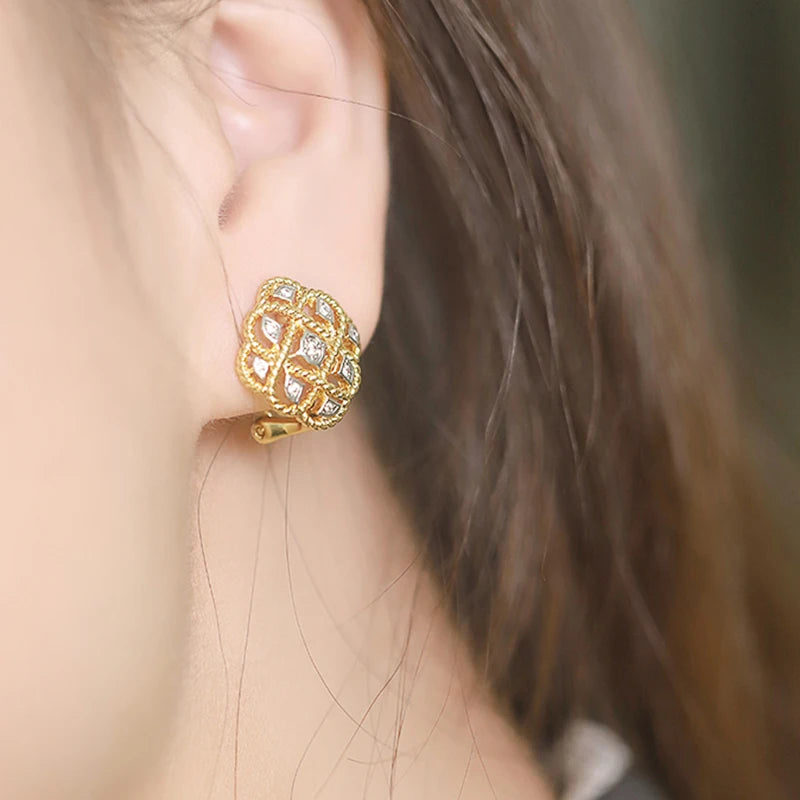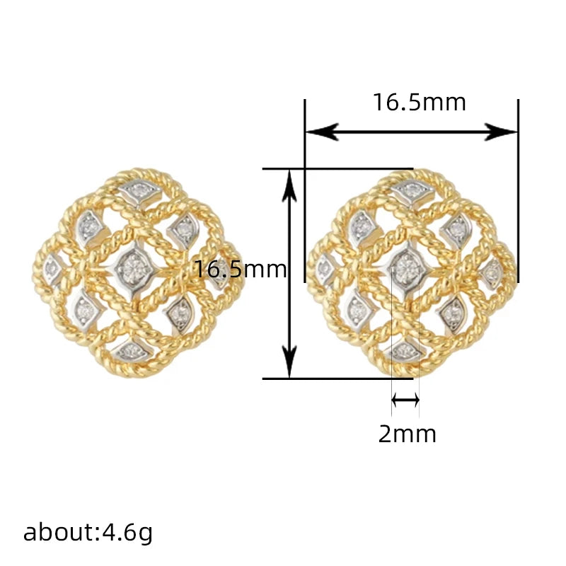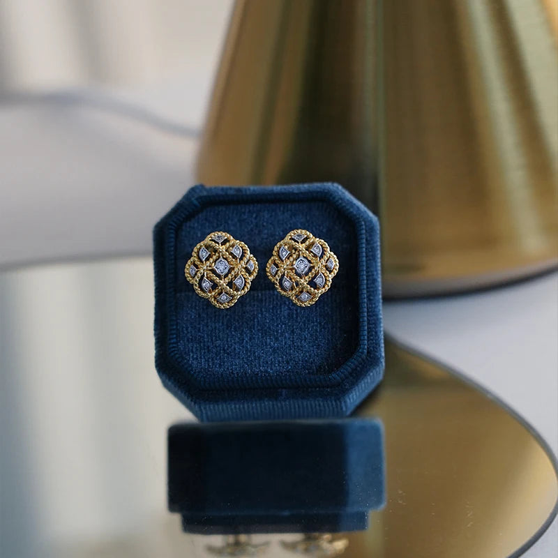 Vintage Hollow Stud Earrings Two Tone Rhombic Shaped Women Earrings Piercing Temperament Lady Accessories New Jewelry