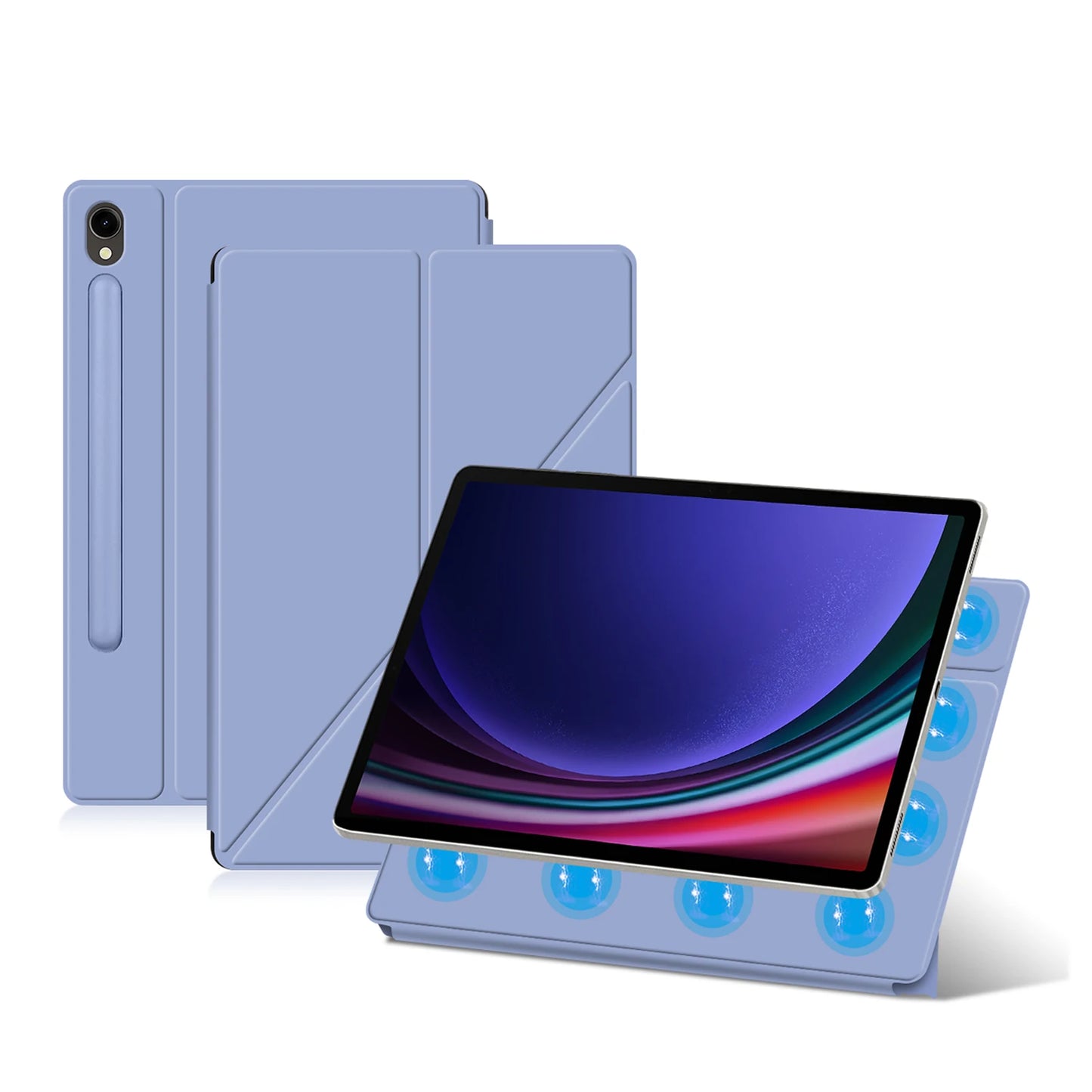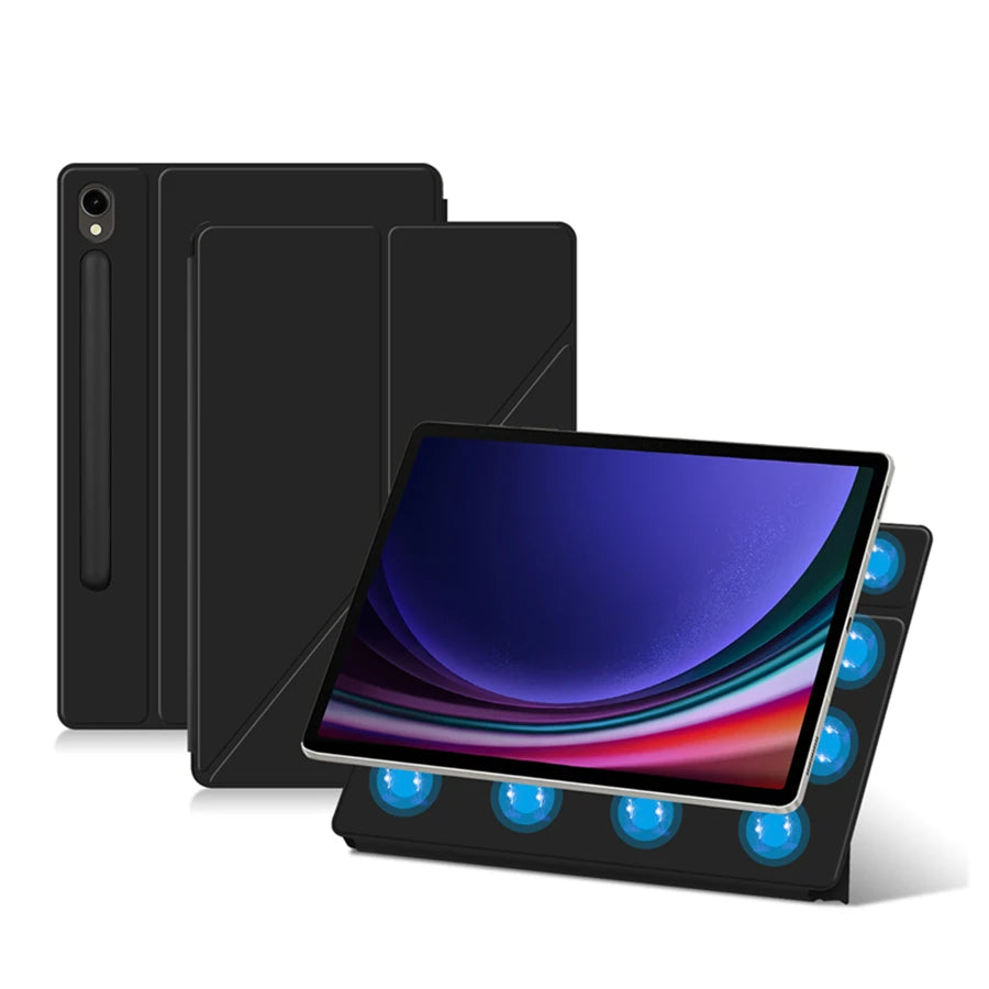 Protect and enhance your Samsung Galaxy Tab with the HUWEI Magnetic Case. The sturdy cover provides excellent protection while the magnetic closure makes it easy to access your device. With a built-in stand, you can comfortably view your tablet in multiple angles. Compatible with Tab S9 FE, S7, S8 Plus, S9FE, S7FE, S9+, S8+, S8, and S9 models.