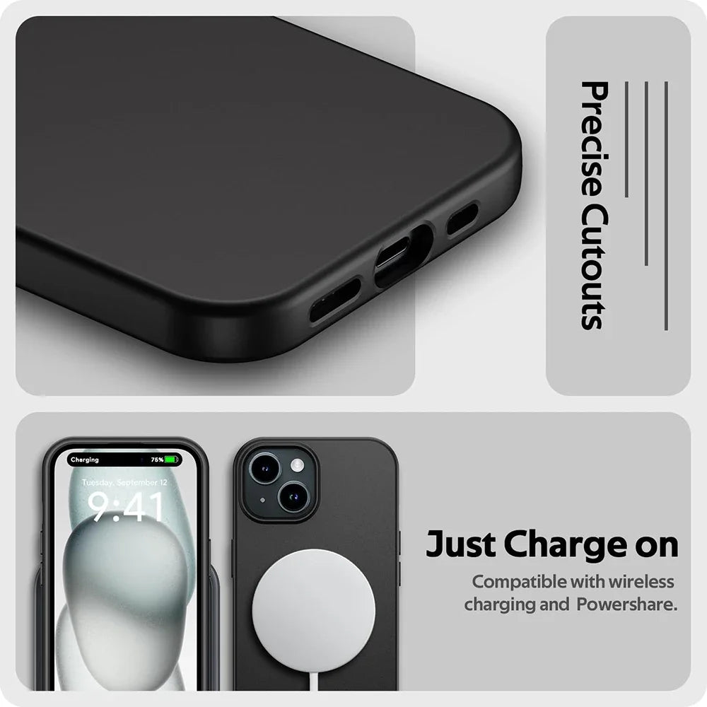Luxury Matte Silicone Soft Case For iPhone 16 15 14 Plus 13 12 Mini 11 Pro XS Max X XR SE 7 8 Plus Ultra Thin Solid Black Cover