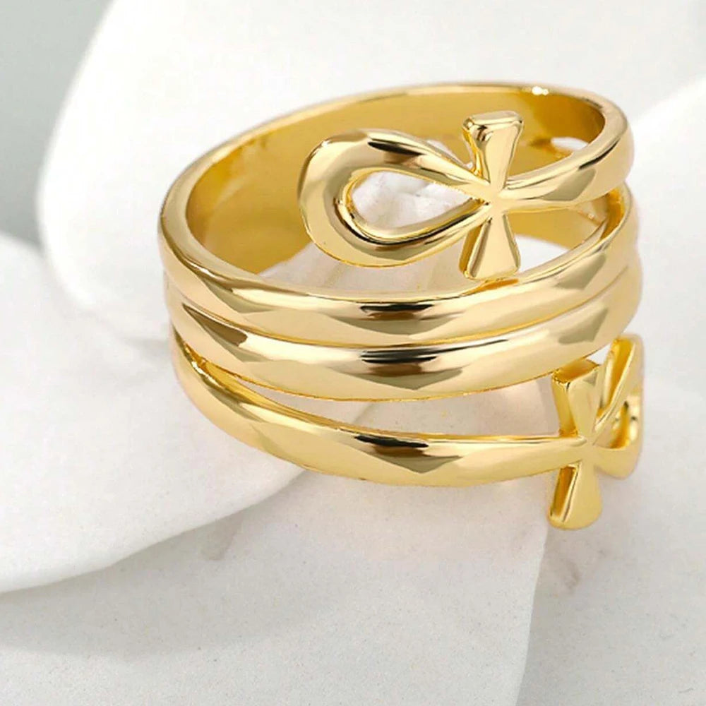 Obega 1 PC Hip Hop Mutilayer Bowknot Gold Color Ring Chic Design Rock Metal Finger Ring For Women Daily Wear Jewelry