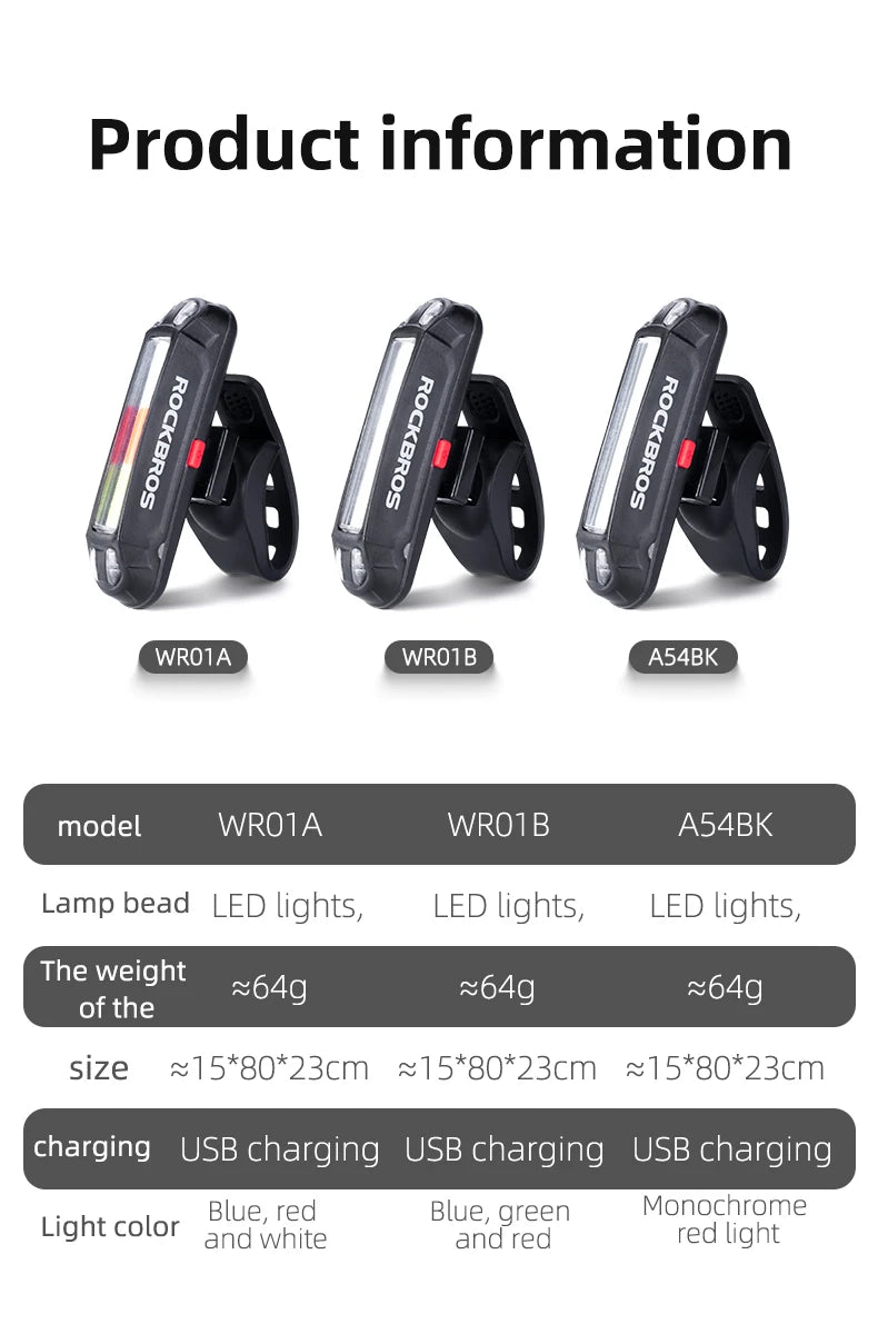 ROCKBROS Bike Tail Light Waterproof Seatpost Warning Bicycle Rear Light MTB Road LED Lamp Tailight USB Charging Cycling Light