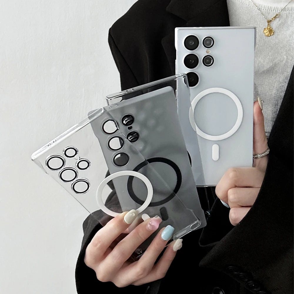 Ultra Slim For Magsafe Clear Frameless Phone Case For Samsung S25 S24 Plus S22 S23 Ultra Magnetic Wireless Charging Back Cover