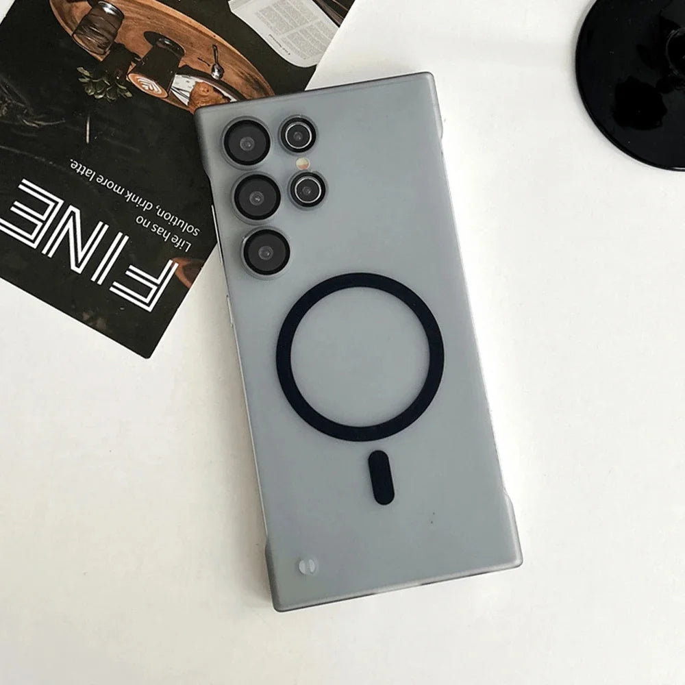 Experience the ultimate in phone protection and convenience with our Ultra Slim For Magsafe Clear Frameless Phone Case. This case is specially designed for Samsung S25, S24 Plus, S22, and S23 Ultra models and features a frameless design for maximum screen visibility. The ultra-slim profile allows for wireless charging and the built-in magnetic feature adds extra security. Keep your phone safe and stylish with this must-have case.