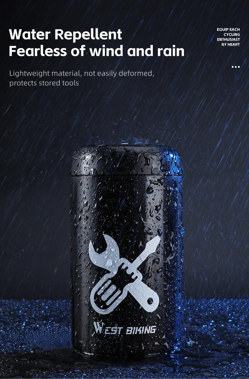The WEST BIKING Bicycle Repair Tool Storage Capsule combines convenience and functionality for your cycling needs. With a waterproof design and attached water bottle cage, this toolkit allows for easy access to essential repair tools while on the go. Perfect for MTB and Road Bike enthusiasts.