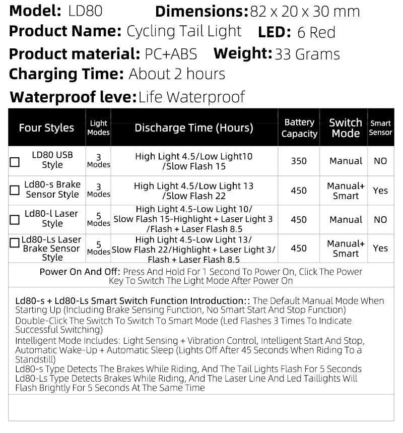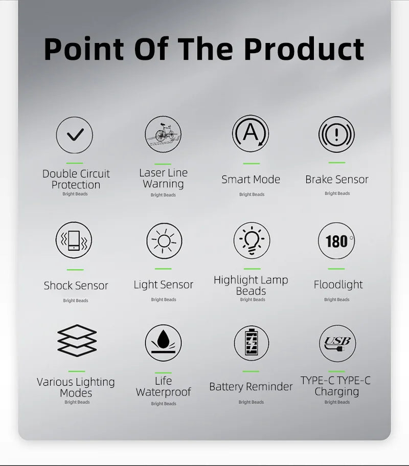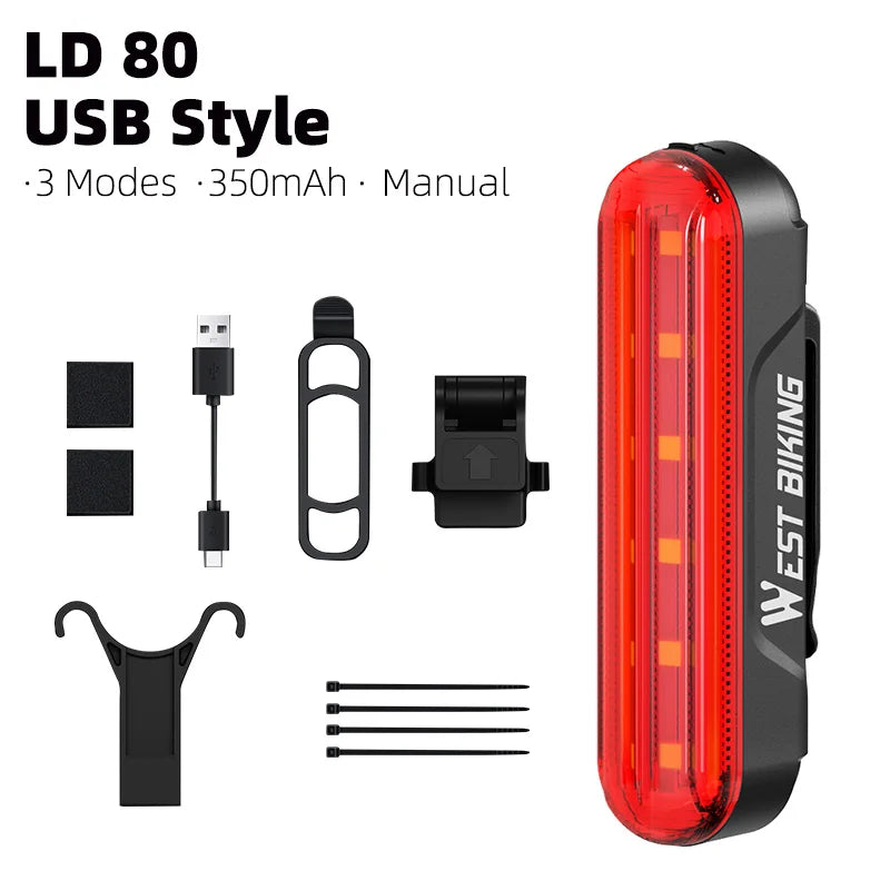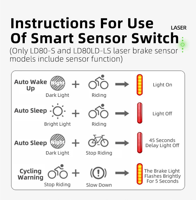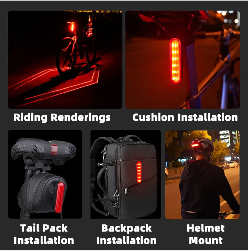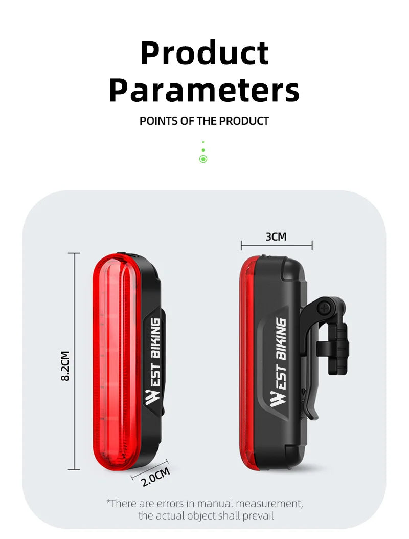 Increase your safety on the road with the WEST BIKING Bike Taillight Laser Brake Sensing Rear Light. This waterproof light features an innovative brake sensing technology and USB charging for convenience. Suitable for both mountain and road bikes, it's a must-have accessory for any cyclist.