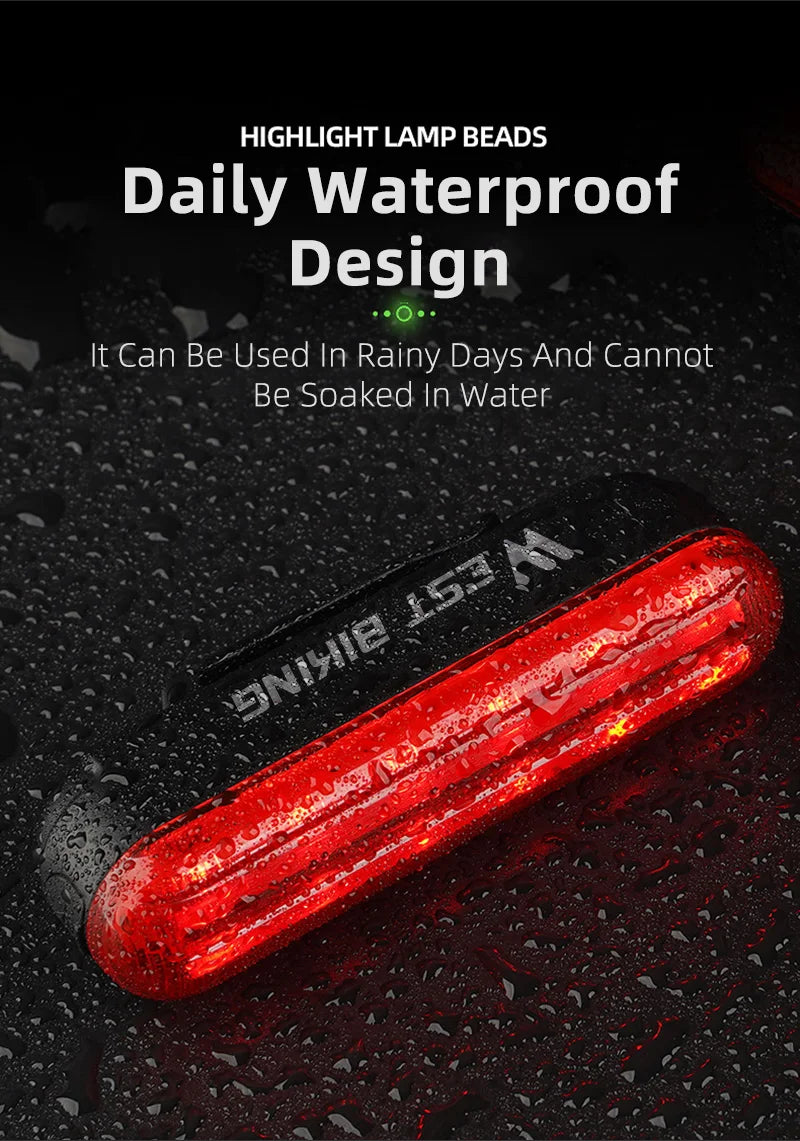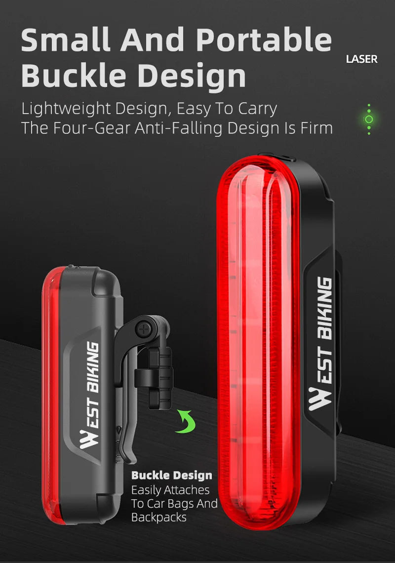 WEST BIKING Bike Taillight Laser Brake Sensing Rear Light IPX5 Waterproof USB Charging Bike Light MTB Road Bicycle Accessories
