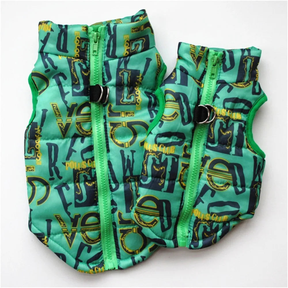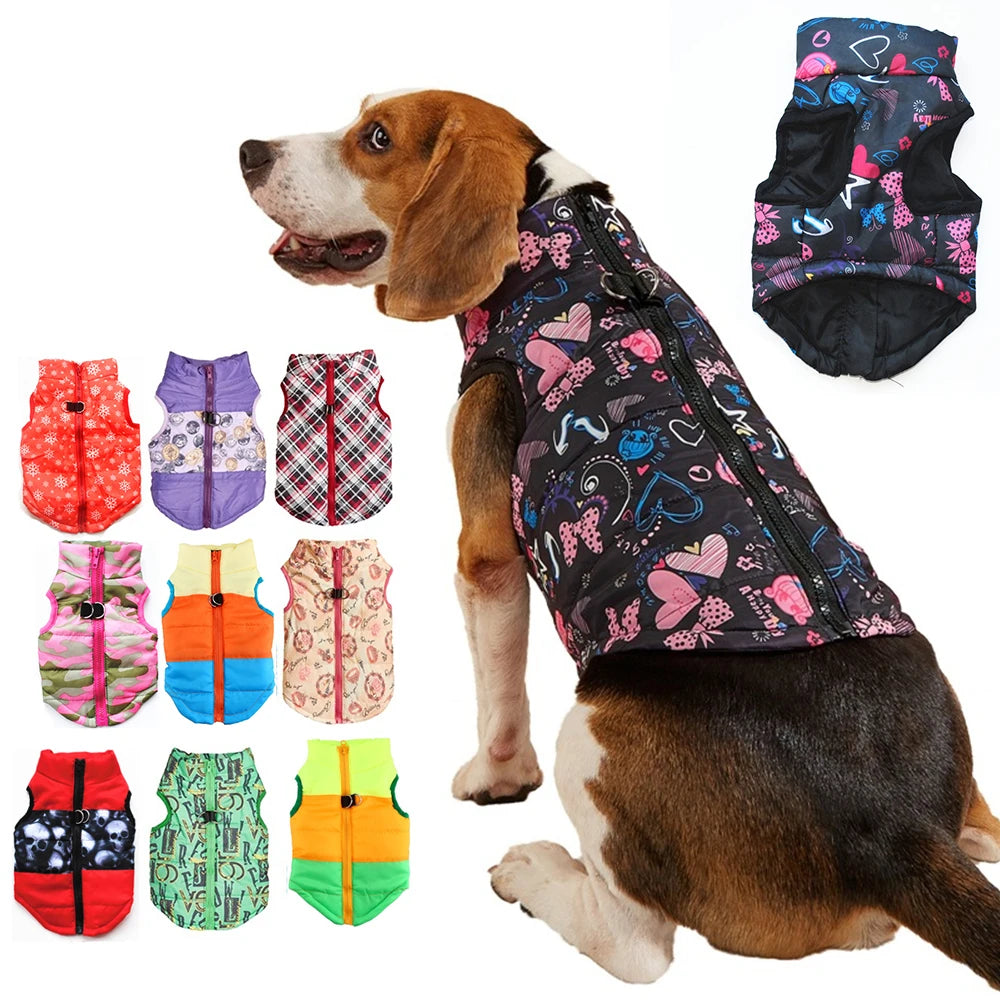 Windproof Pet Vest Jacket Winter Warm Big Dog Clothes Puppy Harness Clothing Funny Printed Coat for Small Medium Dogs Cats XS-XL