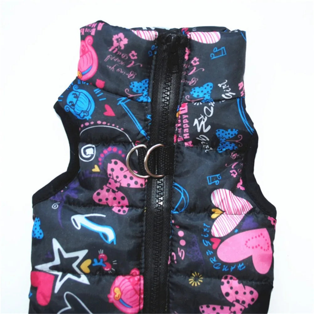 Stay warm and stylish this winter with our Windproof Pet Vest Jacket! Designed for small to medium sized dogs and cats, this jacket features a harness for easy walking and a funny printed coat for a playful touch. Keep your furry friend cozy with our winter essential. Available in sizes XS-XL.