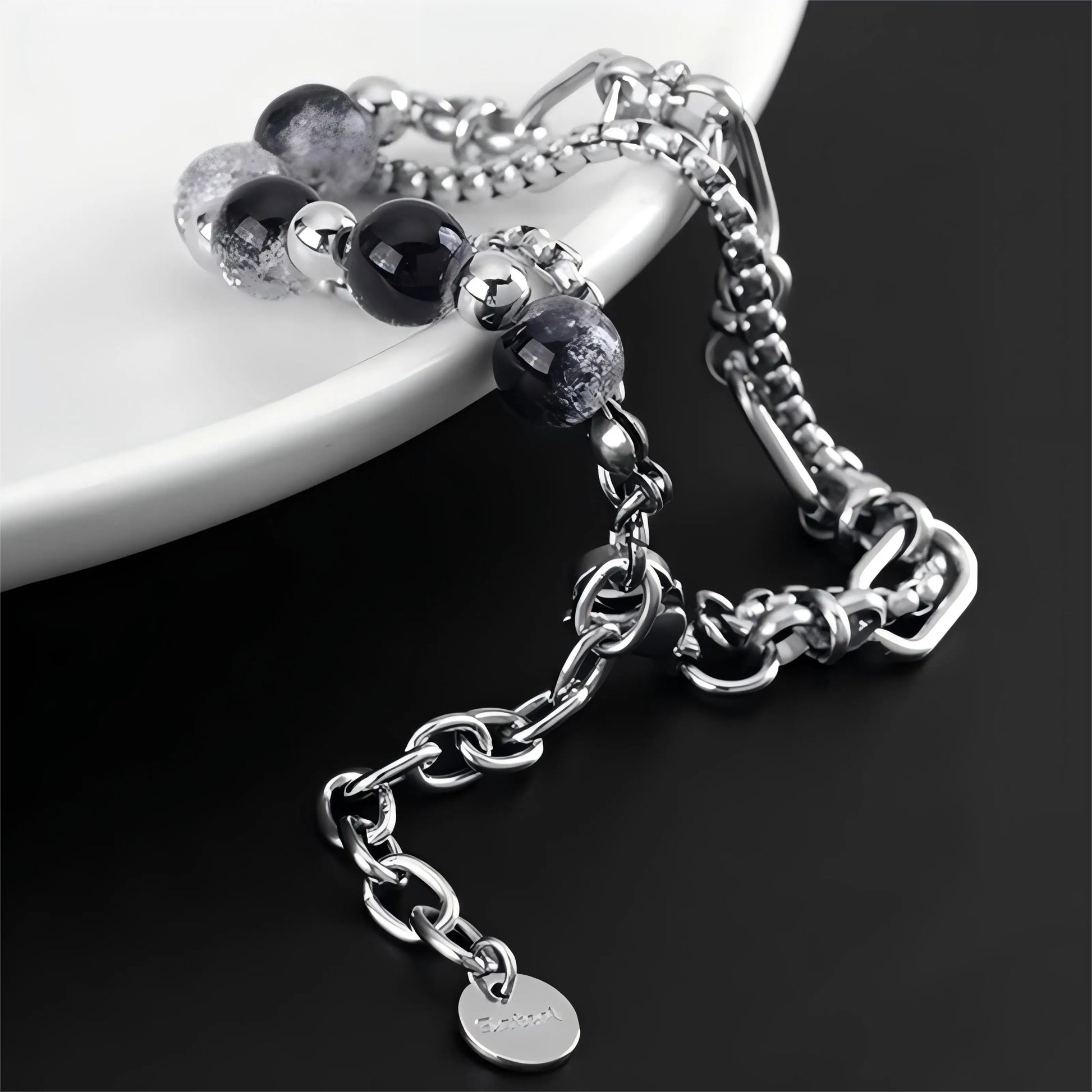 This ZAKOL bracelet features trendy ball crystal beads and a black link chain, creating a stylish and versatile piece of jewelry for both men and women. Its unique design makes it the perfect accessory for any outfit, and its high-quality materials ensure long-lasting wear. Add a touch of elegance to your look with this exquisite bracelet.